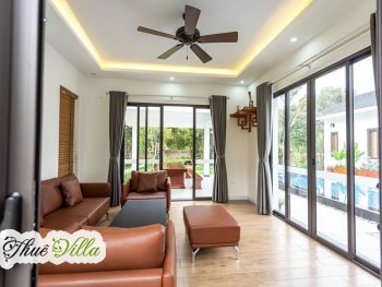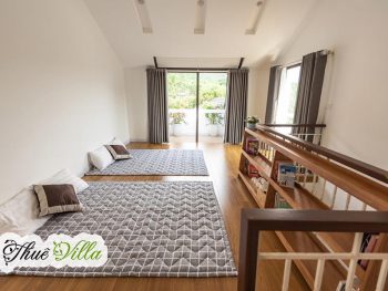 Blue Mountain Villa bao gồm: 04 phòng ngủ (01 giường đôi 1,8m x 2m), 01 phòng ngủ tập thể (02 đệm 1,6m x 2m), 02 đệm dự phòng 1,2m x 2m, 01 phòng khách, 01 mini Bar ngoài trời, 01 phòng sinh hoạt chung, bếp, bể bơi, phòng xông hơi, sân cỏ tổ chức tiệc ngoài trời, teambuilding, lửa trại, BBQ.
