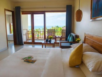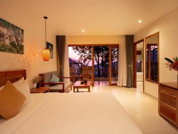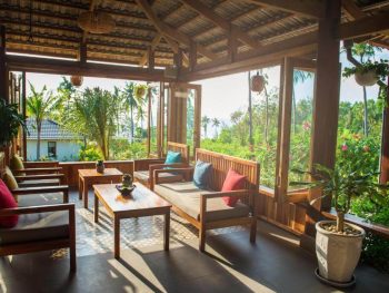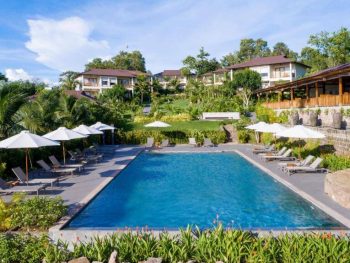 Sở hữu vị trí đắc địa trên một ngọn đồi nhỏ ở bãi biển Ông Lang thơ mộng, Camia Resort & Spa có một hệ thống cây xanh, sân vườn bao quanh khu resort bao gồm cây và hoa cùng kiến trúc vô cùng ấn tượng và độc đáo đã phải lòng bao du khách khi đến đây thuê villa nghỉ dưỡng