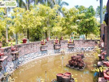 Lotus Farm Gia Lâm được bố trí trồng nhiều cây và hoa. Khi mới bước chân vào đây, mình đã có cảm tình với lối vào Villa. Đường vào được thiết kế chẳng khác nào một khu nghỉ dưỡng cao. Ngoài ra, càng đi sâu vào trong, các bạn sẽ thấy được sự thú vị từ hồ nước trong veo, tới đầm sen và những khu vui chơi cho trẻ con.