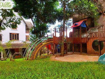 – Khu vực sân chơi vận động ngoài trời với các thiết bị thú vị cho bé