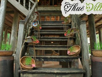 Nhà Sàn – Là một ngôi nhà đặc trưng của người dân tộc thiểu số miền núi với diện tích hơn 100m2, gồm 9 phòng được ngăn bởi rèm kéo và có 4 phòng tắm. Ngôi nhà được bao quanh bởi vườn cây xanh mát, cánh đồng lúa mênh mông và hồ nước rộng tạo nên một khung cảnh rất nên thơ.