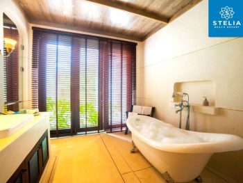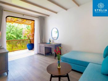 Phong cách Địa Trung Hải ngay giữa thành phố biển Tuy Hòa mang đến cho khách du lịch những trải nghiệm nghỉ dưỡng mới lạ nhưng cũng rất tuyệt vời. Căn biệt thự đẳng cấp 5 sao Stelia có diện tích 250m2, 1 phong ngủ, phòng khách và hồ bơi riêng trong khuôn viên sân vườn.