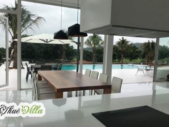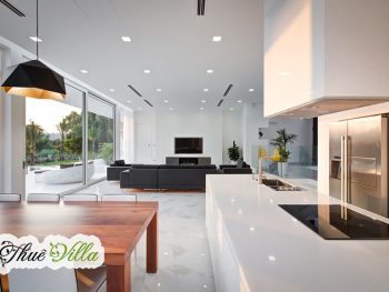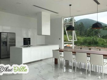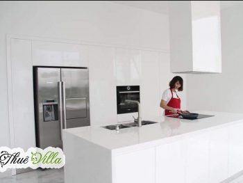 Khu bếp chỉ có trong phim vô cùng thoáng đãng, sạch sẽ, có tủ lạnh Bosch, lò nướng Bosch, bếp Bosch,bát đũa, ấm siêu điện….