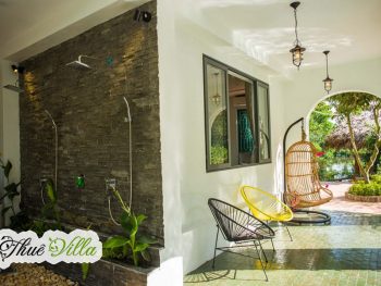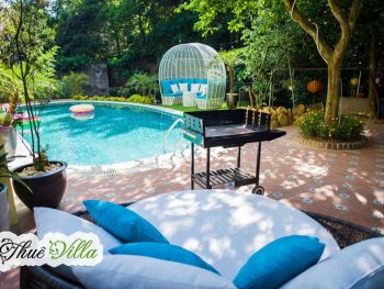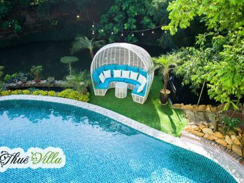 Biệt thự được bao quanh bởi rất nhiều cây xanh, ao cá và hồ bơi cùng rất nhiều không gian vui chơi và tổ chức tiệc BBQ, tổng hòa tạo nên một không gian sống tươi mát, trong lành và lý tưởng cho bất kỳ ai.