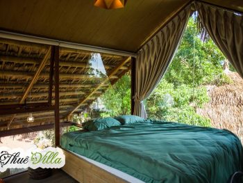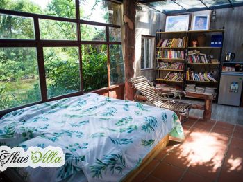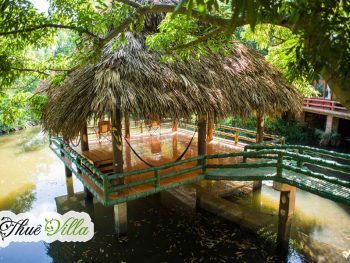 +01 khu nhà trên mặt hồ với 01 phòng ngủ đôi có view trực diện ra mặt hồ thoáng mát với phòng khách, khu bếp và khu vệ sinh riêng biệt. Điểm đặc biệt của khu nhà phía dưới là chòi câu cá, hồ hoa súng.