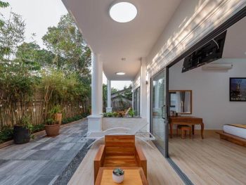 Tọa lạc trong khu vườn nhiệt đới và nằm trên Trung Tâm tại Đảo Phú Quốc, Chỗ nghỉ cũng có hiên tắm nắng, hồ bơi ngoài trời mở cửa quanh năm để du khách ngâm mình hoặc đơn giản là thư giãn dưới ánh nắng mặt trời trên các giường kiểu Caribe. Du khách đến thuê villa Phú Quốc có thể tận hưởng sự yên bình tại chỗ nghỉ cạnh hồ bơi hoặc sử dụng dịch vụ miễn phí phòng xông hơi ngay cạnh bể bơi.