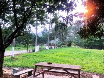 🌳🌺🎣 Vườn cây trái rộng ngập tràn bưởi, xoài… và một con suối nhỏ, ao cá cho những ai thích câu cá, lội nước, chụp ảnh.