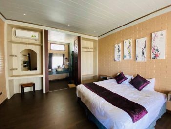 Phòng nhà mình là dạng Bungalow và hiện mới có 3 loại phòng, nhưng tất cả phòng đều view biển, cách mặt nước biển chỉ 40m thôi ạ.