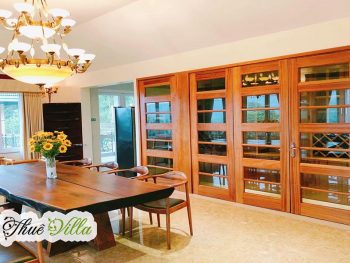 Villa với diện tích 350m2 gồm 4 phòng ngủ, 1 phòng khách, 5 nhà vệ sinh có thể lưu trú từ tiêu chuẩn 12 khách. Mỗi phòng có điều hòa và nước nóng lạnh, Bếp và Tủ lạnh, Wifi miến phí, Chòi nướng BBQ, Bể Bơi