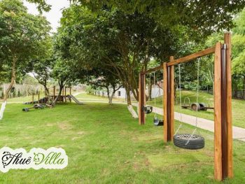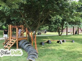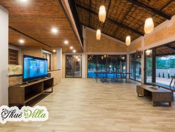Villa Nhà Lá gồm 4 phòng ngủ riêng và 1 phòng ngủ chung đi kèm các hoạt động giải trí gồm bóng bàn, bóng rổ, bóng đá ( sân lớn), zipline,khu vui chơi trẻ em gồm cầu trượt, xích đu, bập bênh, sân đua xe đạp thăng bằng. Bên cạnh đó còn có bể bơi 4 mùa rộng 100m2 mái kính trong nhà, phòng xông khô, đáp ứng đủ nhu cầu vui chơi của mọi lứa tuổi. Ngoài ra villa được trang trí đèn và cây xanh ngoài khuôn viên sẽ giúp cho các bữa tiệc nướng bbq của các bạn thêm phần hấp dẫn và ấm cúng